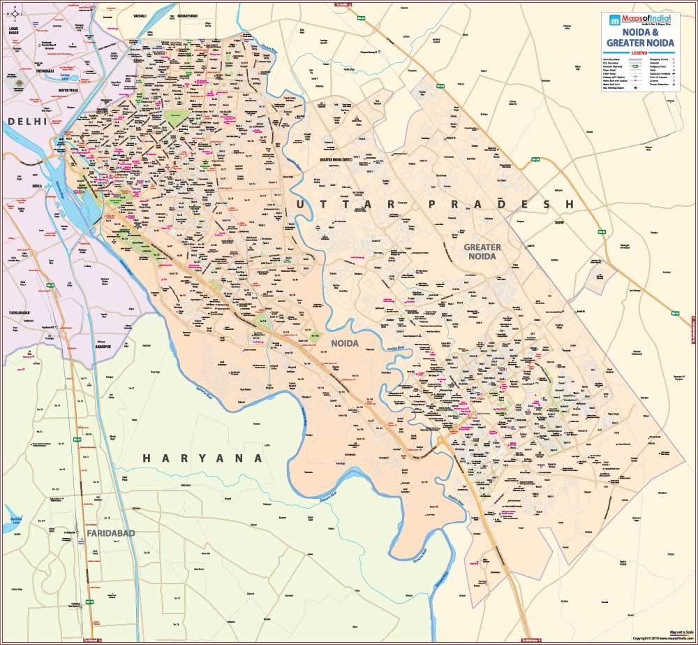 Maps Of India Noida-Greater Noida Map (48″W X 46.5″H) -2019 Edition …, Noida, India, Noida Uttar Pradesh, Greater Noida Expressway