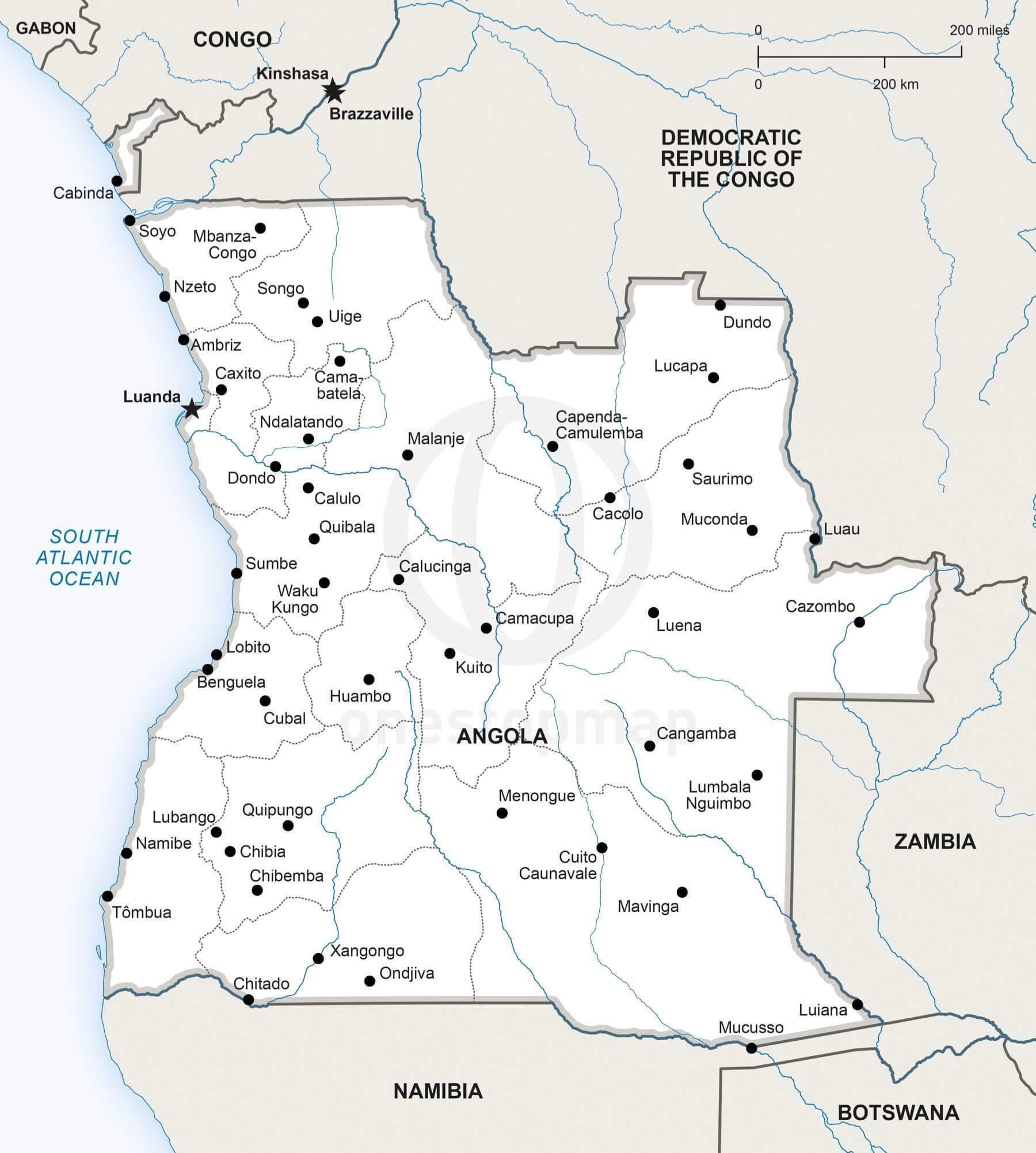 Vector Map Of Angola Political | One Stop Map, Cubal, Angola, Cubal, Angola