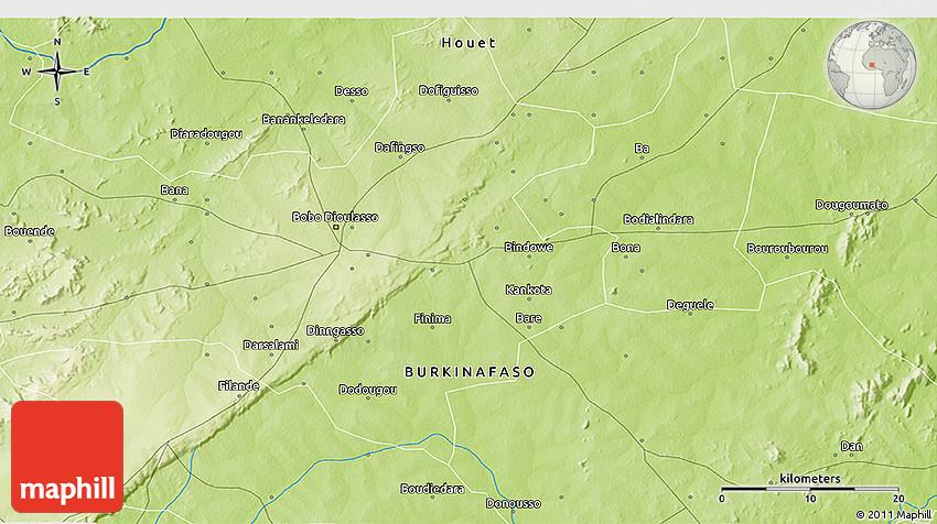 Physical Map Of Niangoloko, Niangoloko, Burkina Faso, Burkina Faso On World, Burkina Faso World