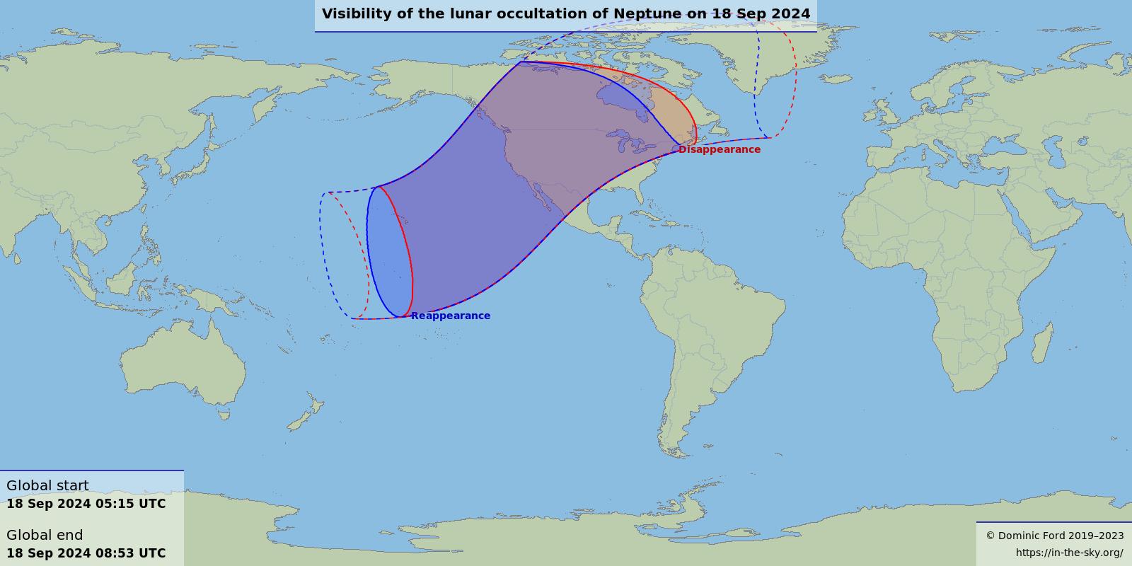 Lunar Occultation Of Neptune – In-The-Sky, Neptune, United States, United States Color, United States With City