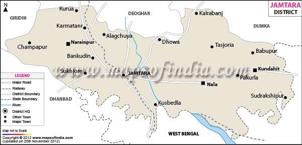 Jamtara District Map, Jāmtāra, India, Jammu And Kashmir, Topographic