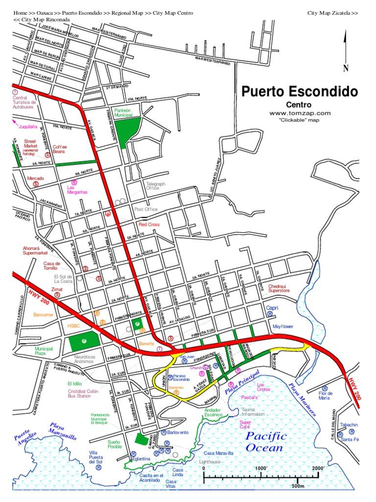 Mapa Puerto Escondido Centro, Puerto Escondido, Colombia, Puerto Escondido Surf, Oaxaca City To Puerto Escondido