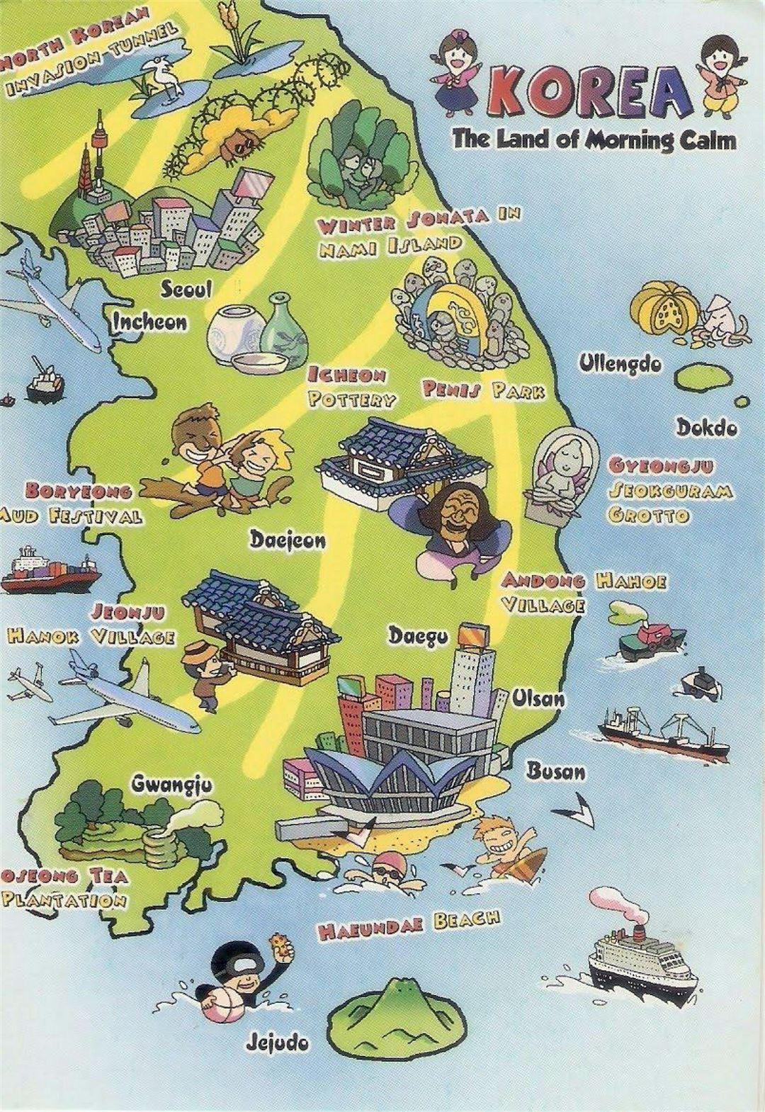 Tourist Illustrated Map Of South Korea | South Korea | Asia | Mapsland …, Sihŭng, South Korea, Pyeongchang South Korea, Detailed South Korea