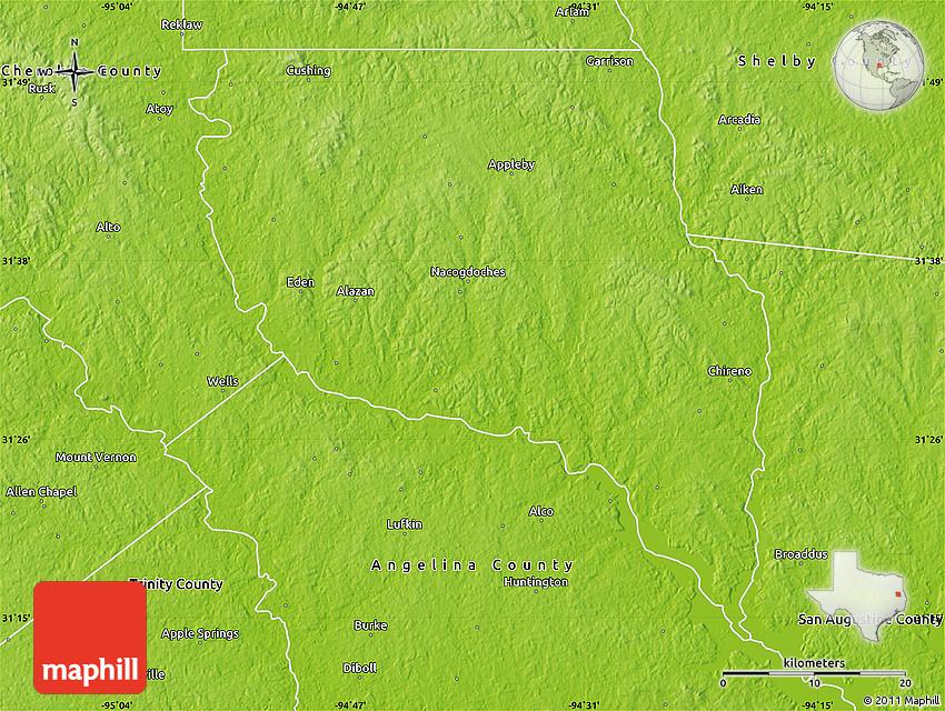 Physical Map Of Nacogdoches County, Nacogdoches, United States, Nacogdoches City, Nacogdoches Texas