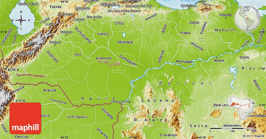 Physical Map Of Barinas, Barinas, Venezuela, Los Llanos Venezuela, Estados De Venezuela