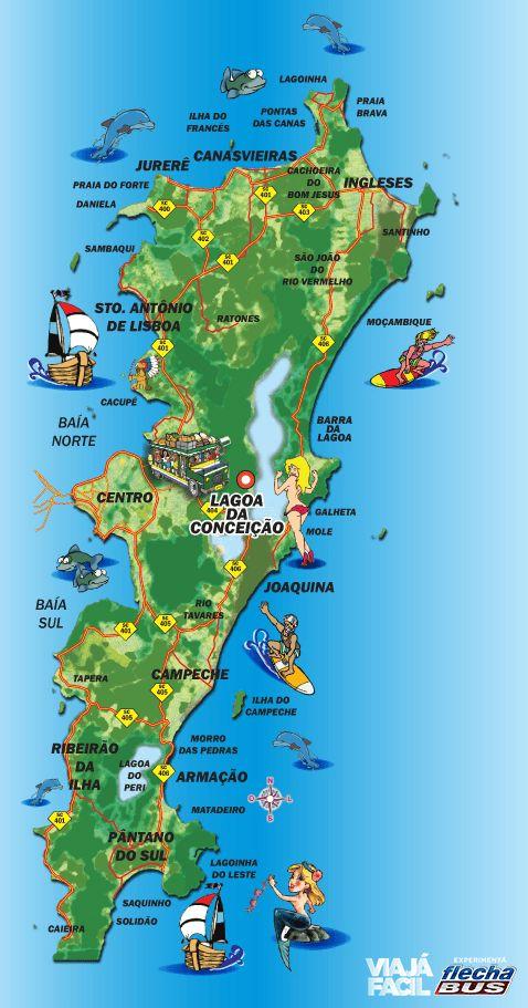 Mapa De Florianopolis – Brasil. | Mapa De Florianopolis, Praias De …, Florianópolis, Brazil, Floripa Brazil, Santos Brazil