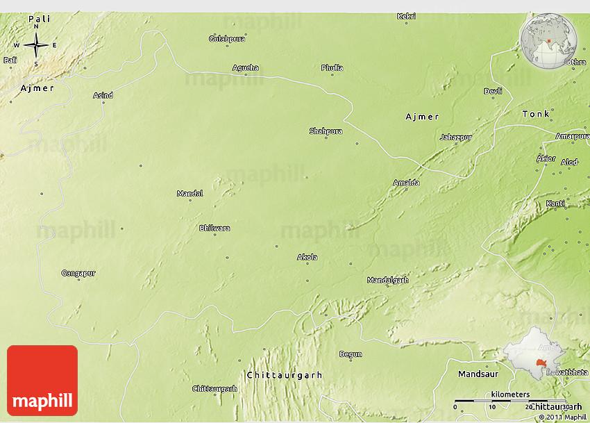 Physical 3D Map Of Bhilwara, Bhīlwāra, India, Chittorgarh India, Rajasthan Blank
