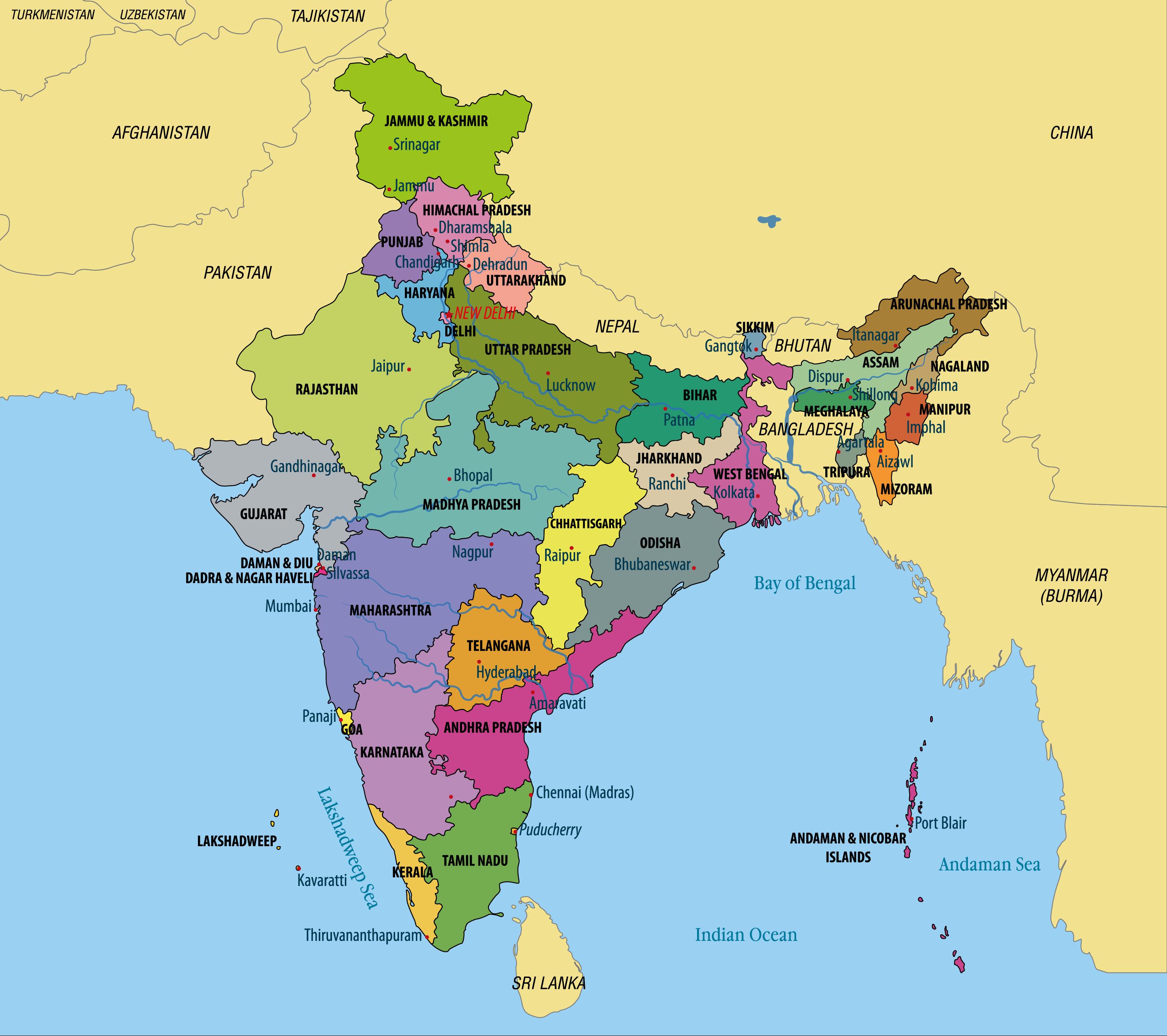 Political Map Of India Enlarge View, Murlฤซganj, India, India Graphic, Goa