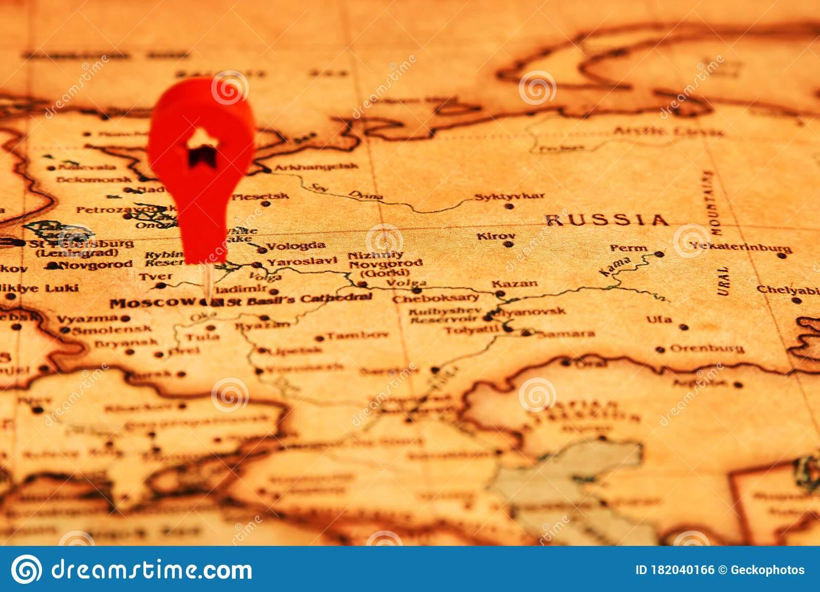 Russia Marked On Map With Map Pin, Close-Up Stock Photo – Image Of …, Marks, Russia, Russia City, White Russia