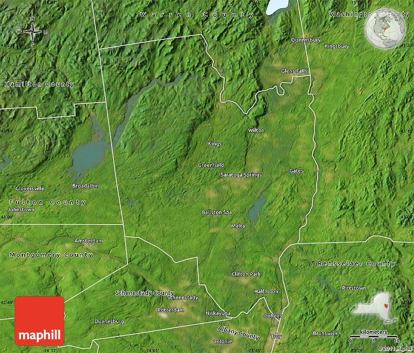 Satellite Map Of Saratoga County, Saratoga, United States, Saratoga Lake, Saratoga Springs