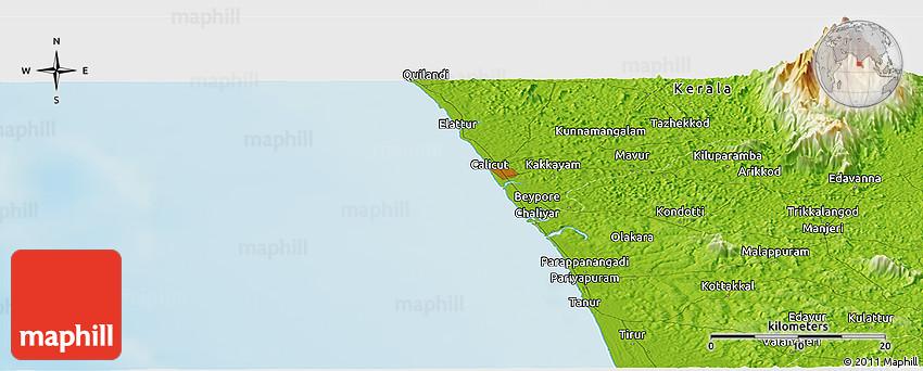 Physical Panoramic Map Of Calicut, Calicut, India, Kozhikode India, Zamorin