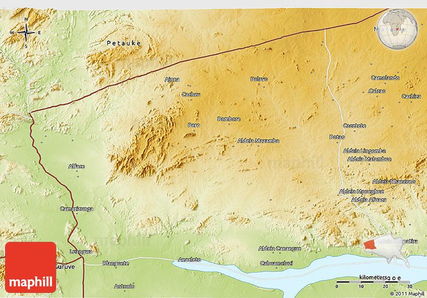 Physical 3D Map Of Zumbu, Zumbo, Mozambique, Mozambique Channel, Manica Mozambique