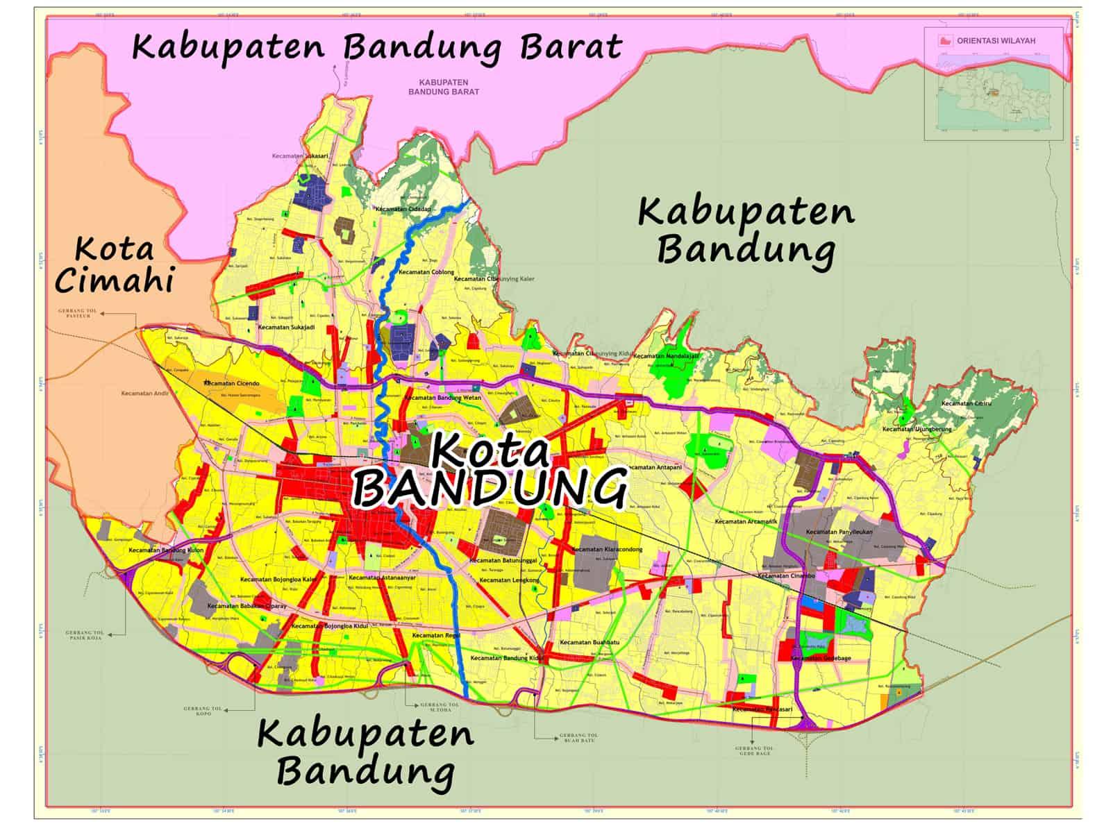 Map Bandung Raya, Bandung, Indonesia, Jawa Barat, Java Indonesia