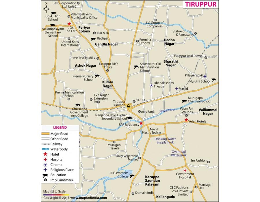 Buy Tiruppur City Map Online, Tiruppūr, India, Tirupur City, Dindigul