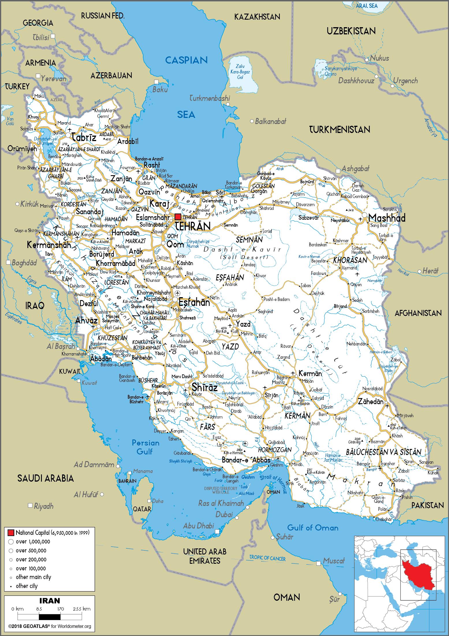 Iran Map (Physical) – Worldometer, Khalkhāl, Iran, Mazandaran Iran, Ramsar Iran
