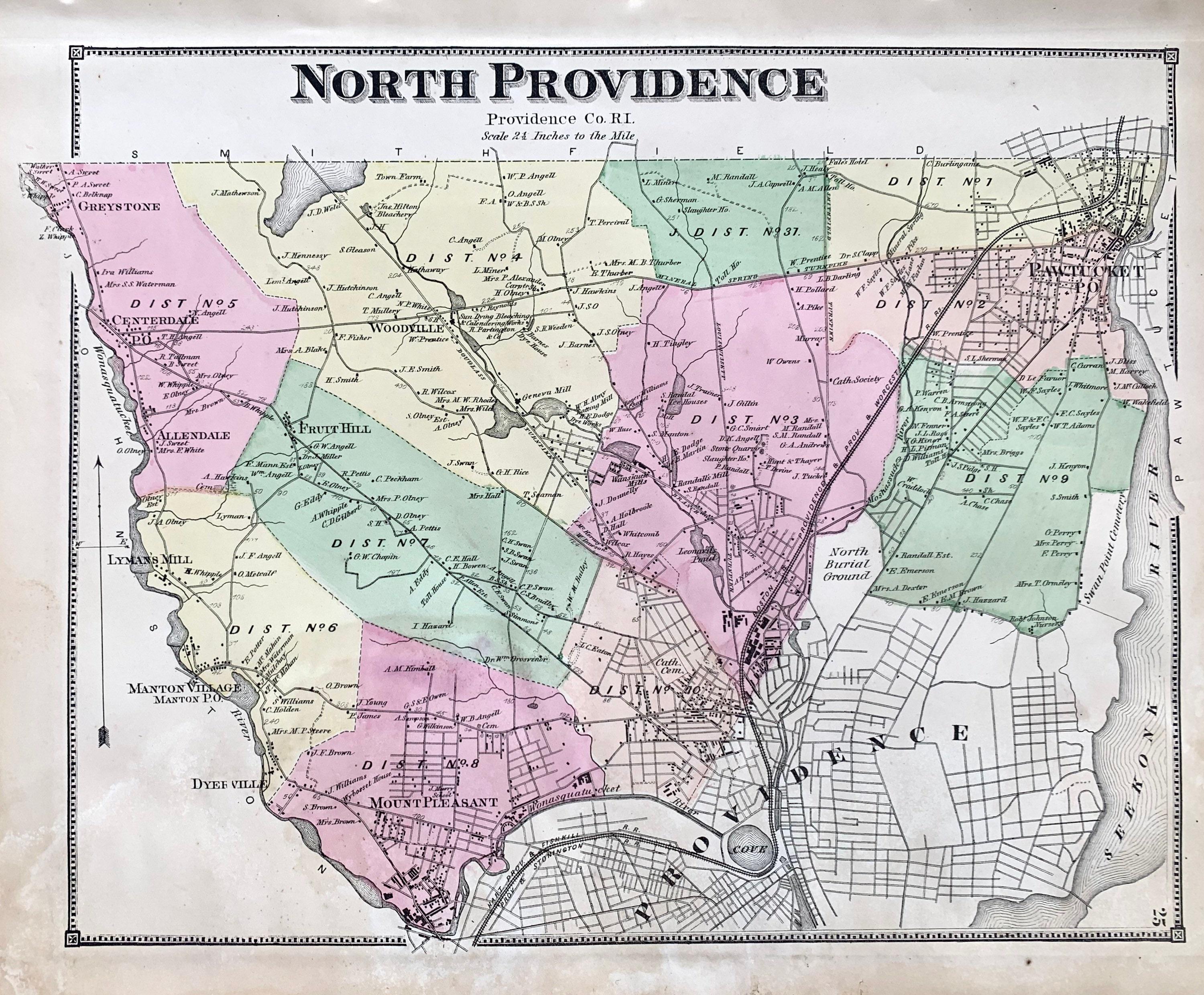 North Providence Map Original 1870 Rhode Island Atlas | Etsy, North Providence, United States, Large Of United States, Usa United States