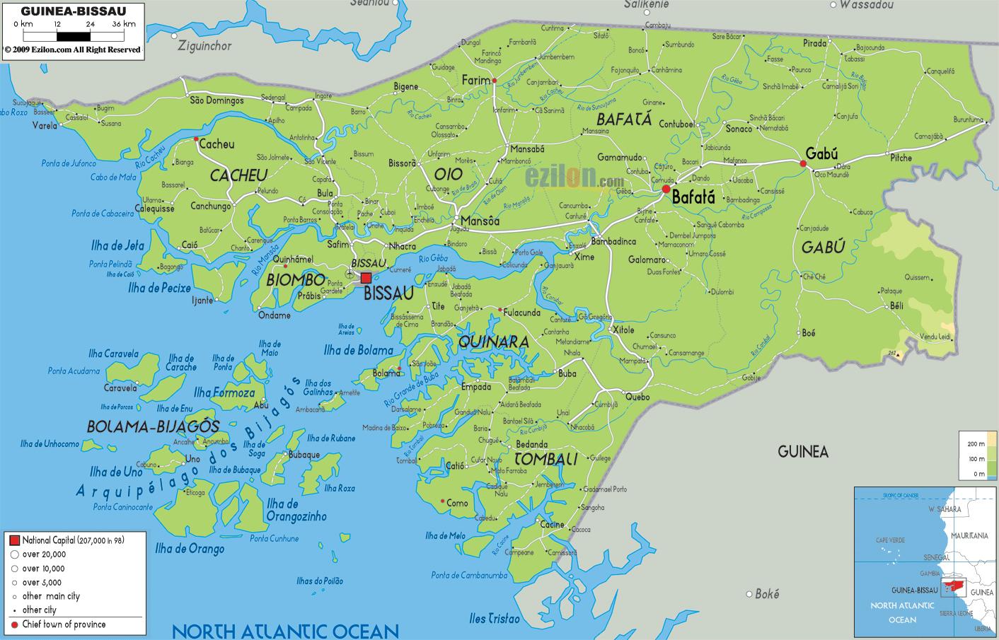 Large Detailed Physical Map Of Guinea-Bissau. Guinea-Bissau Large …, Bissau, Guinea-Bissau, Guinea-Bissau Animals, Capital Of Guinea