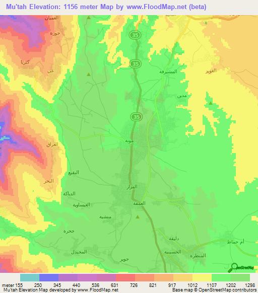 B”Elevation Of Mutah,Jordan Elevation Map, Topography, Contour”, Mu’Tah, Jordan, Mutah Marriage, Mutah University