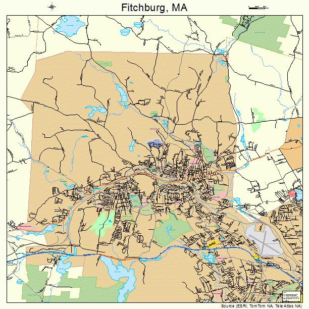 Fitchburg Massachusetts Street Map 2523875, Fitchburg, United States, Fitchburg State Parking, Fitchburg Massachusetts