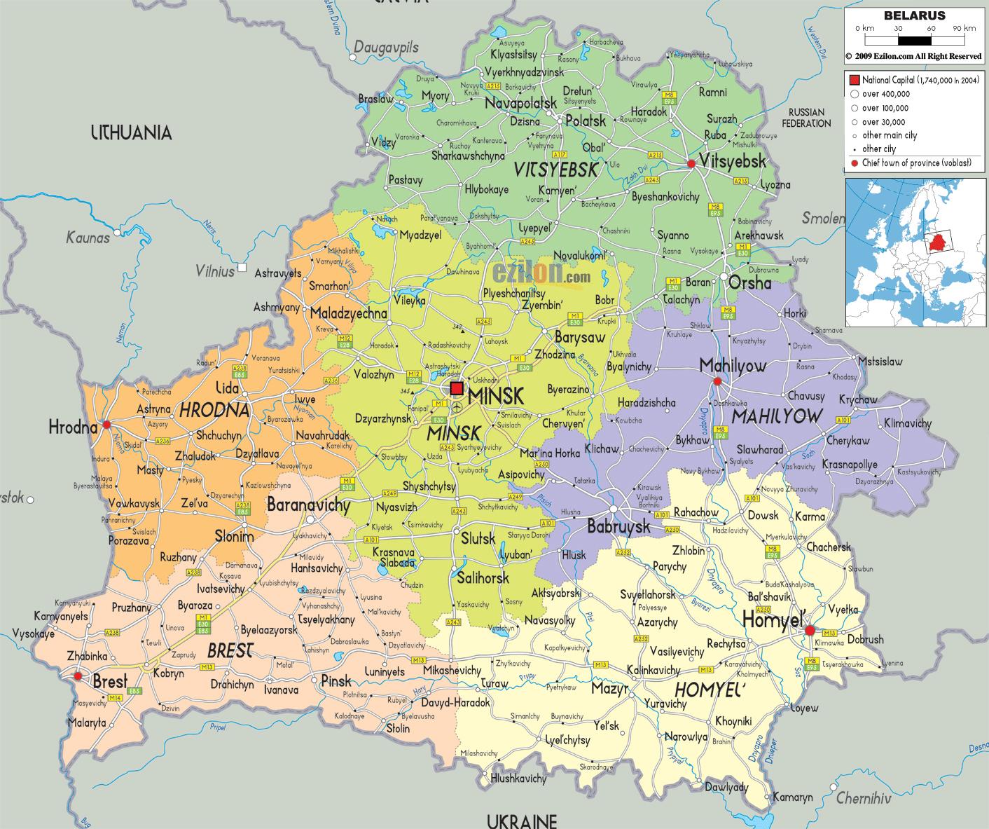 Large Detailed Administrative And Road Map Of Belarus With All Cities …, Vitsyebsk, Belarus, Poland And Belarus, Chernobyl Belarus
