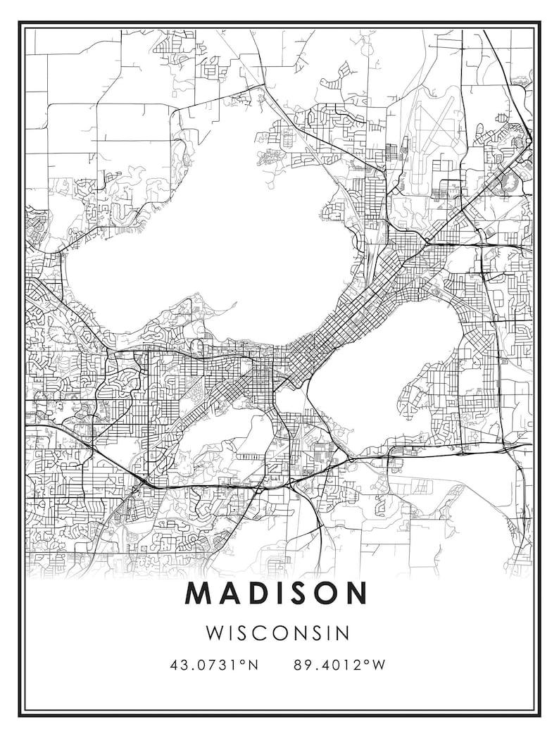 Madison Map Print Poster Canvas Madison City Map Print | Etsy, Madison, United States, United States Constitution James Madison, United States Gray