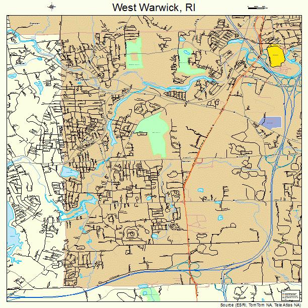 West Warwick Rhode Island Street Map 4478260, West Warwick, United States, 11 Western States, Western United States With Cities