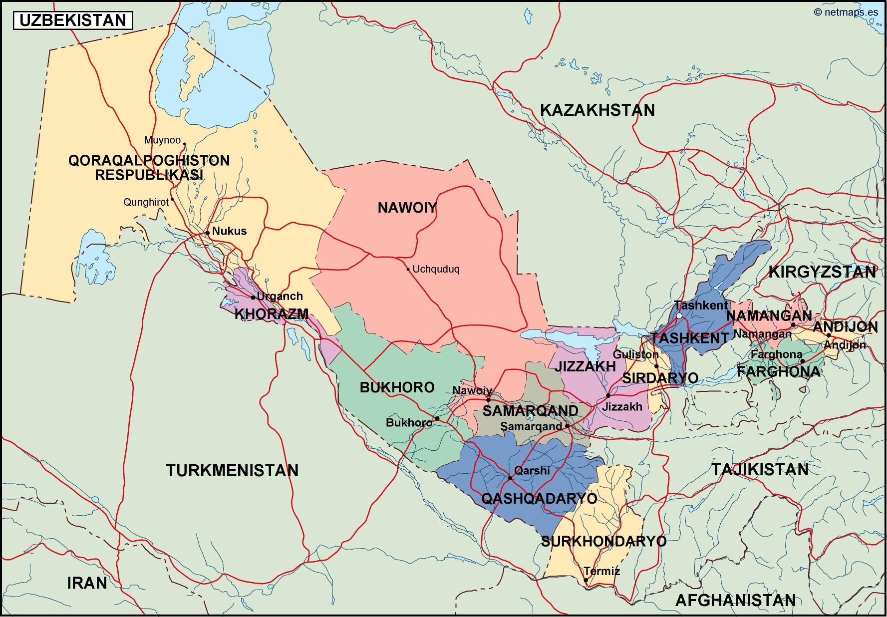 Uzbekistan Political Map | Digital Maps. Netmaps Uk Vector Eps & Wall Maps, Bo‘Ka, Uzbekistan, Kotor Bay Montenegro, Slap Boka