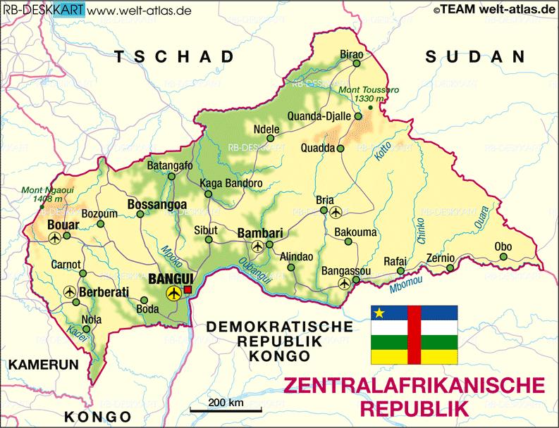 Map Of Central African Republic (Country) | Welt-Atlas.De, Bria, Central African Republic, Central African Republic Killings, Central African Republic Tourism