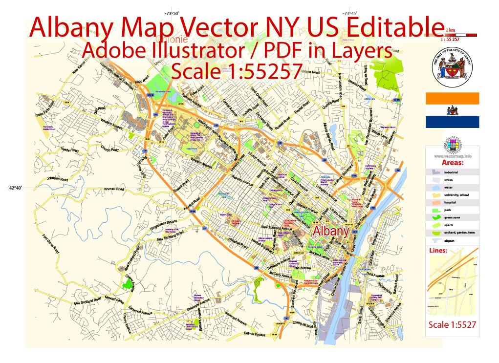 Albany Pdf Map Vector Ny Us City Plan Editable Street Map In Layers, Albany, United States, Upstate Ny, Albany Law School